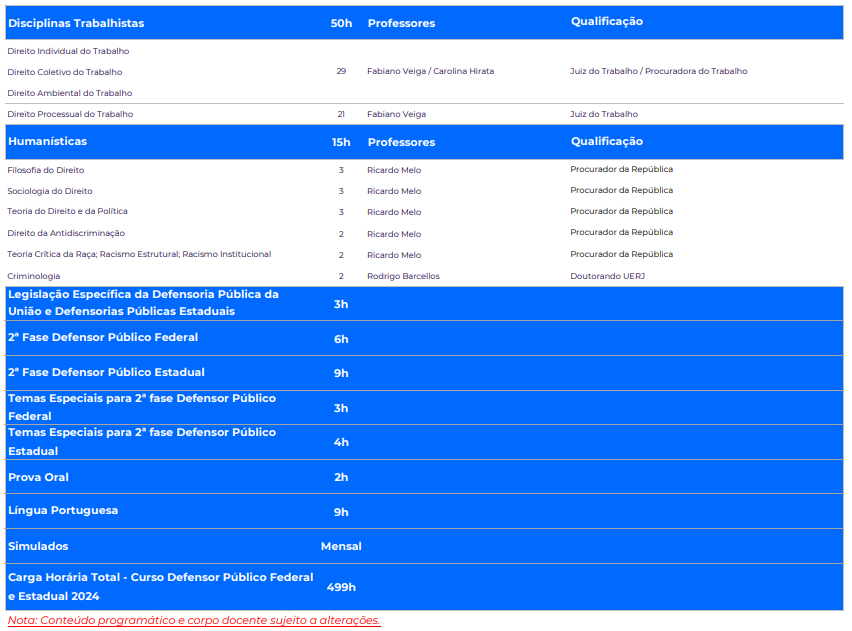 - Aulas de Formação Humanística: De acordo com as principais cobranças e a Resolução nº 185/2021 da DPU.