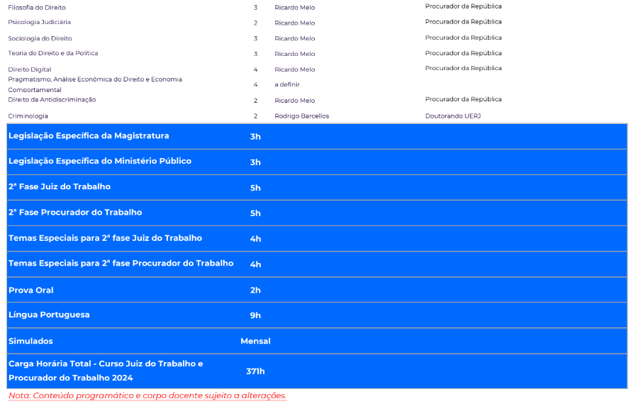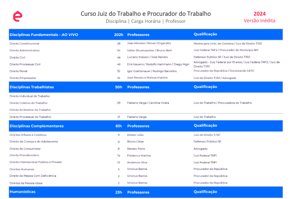 - Aulas de Formação Humanística para Juiz do Trabalho: De acordo com as orientações do CNJ.